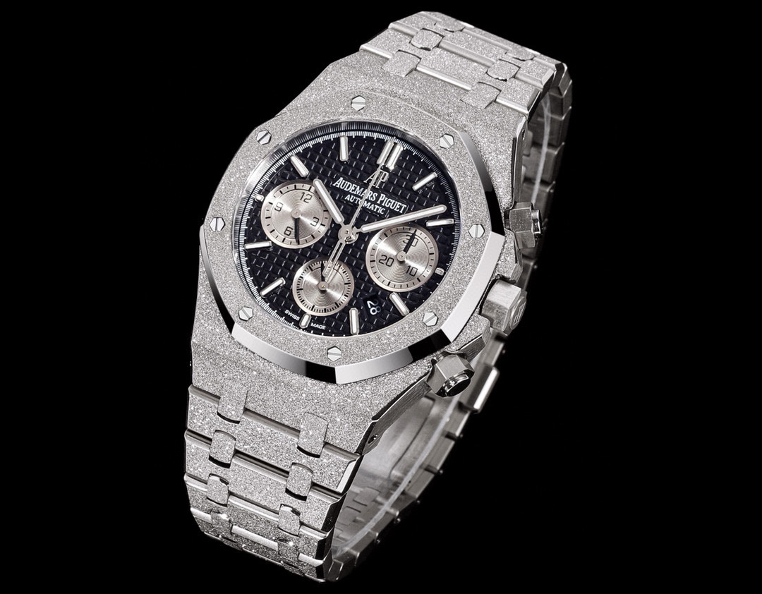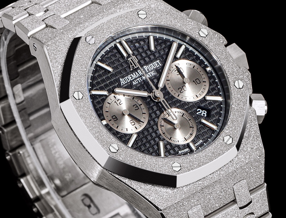 | Audemars Piguet Royal Oak Chronograph 41mm Black Silver Dial Frost Platinum Bezel 26331 | |