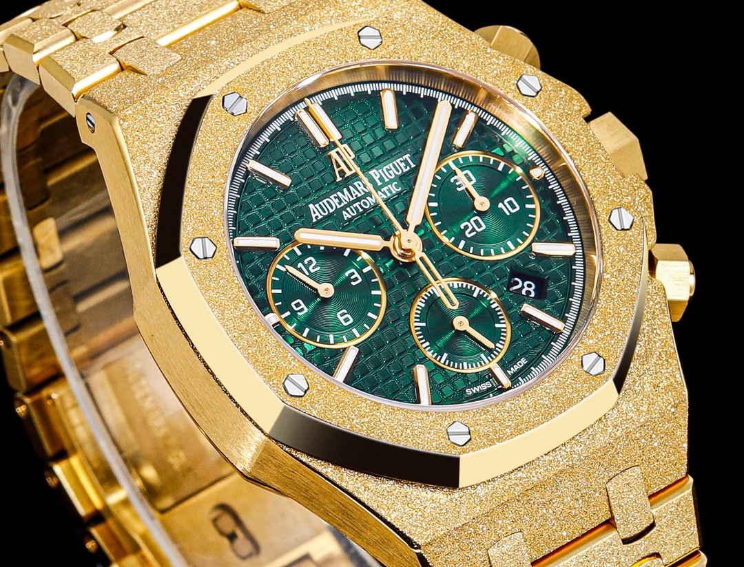 • Audemars Piguet Royal Oak Chronograph 41mm Green Dial Frost Yellow Gold Bezel 26331