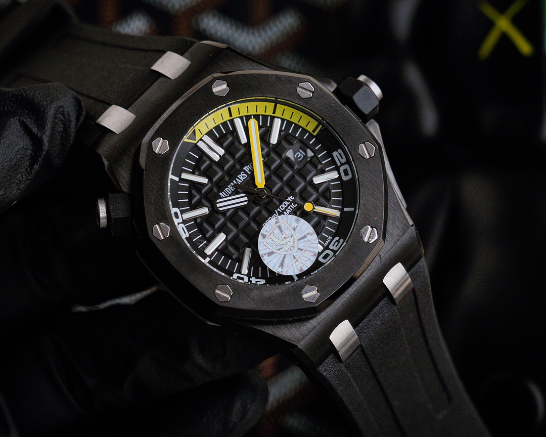 | Audemars Piguet Royal Oak Offshore 42mm Black Yellow Dial Black Bezel Black Rubber 15706AU.OO.A002CA.01 | |