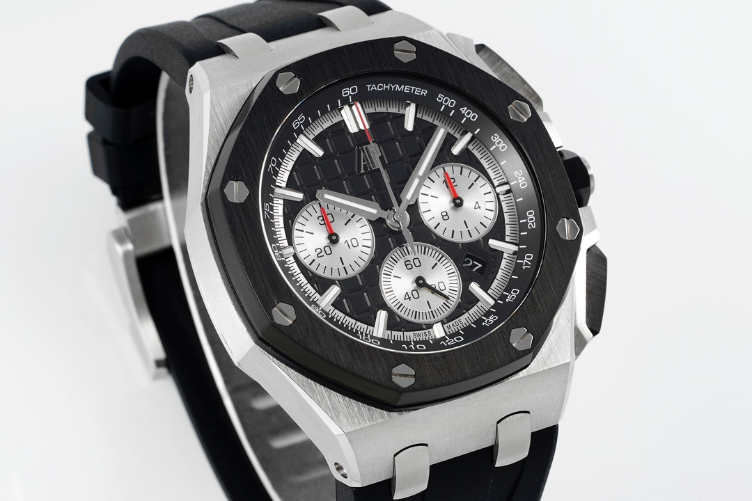 | Audemars Piguet Royale Oak Offshore Chronograph 43mm Black Silver Dial Black Steel Bezel Black Rubber 26420SO.OO.A002CA.01 | |
