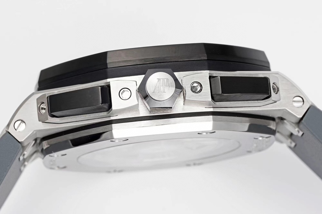 | Audemars Piguet Royale Oak Offshore Chronograph 43mm Grey Blue Dial Black Steel Bezel Grey Rubber 26420IO.OO.A009CA.01 | |