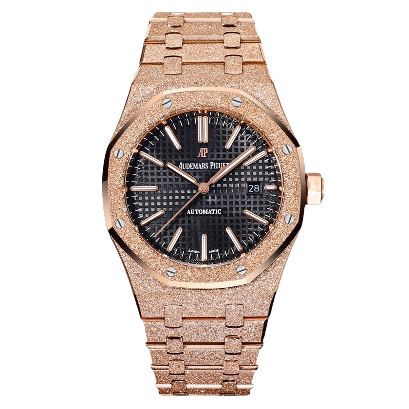 Audemars Piguet Royal Oak 37mm Black Dial Frost Rose Gold Bezel Strap 15454OR.GG.1259OR.01
