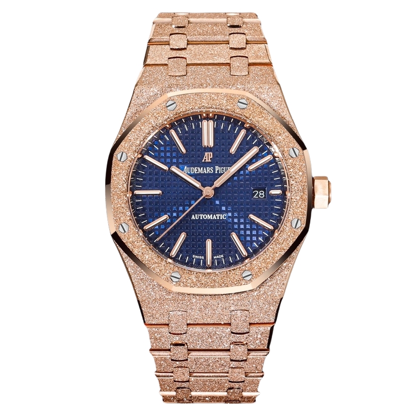 Audemars Piguet Royal Oak 37mm Blue Dial Frost Rose Gold Bezel Strap 15454OR.GG.1259OR.01