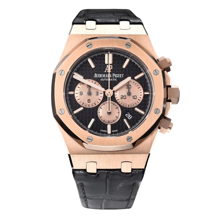 Audemars Piguet Royal Oak Chronograph 41mm Black Dial Rose Gold Bezel Black Crocodile Strap 26331