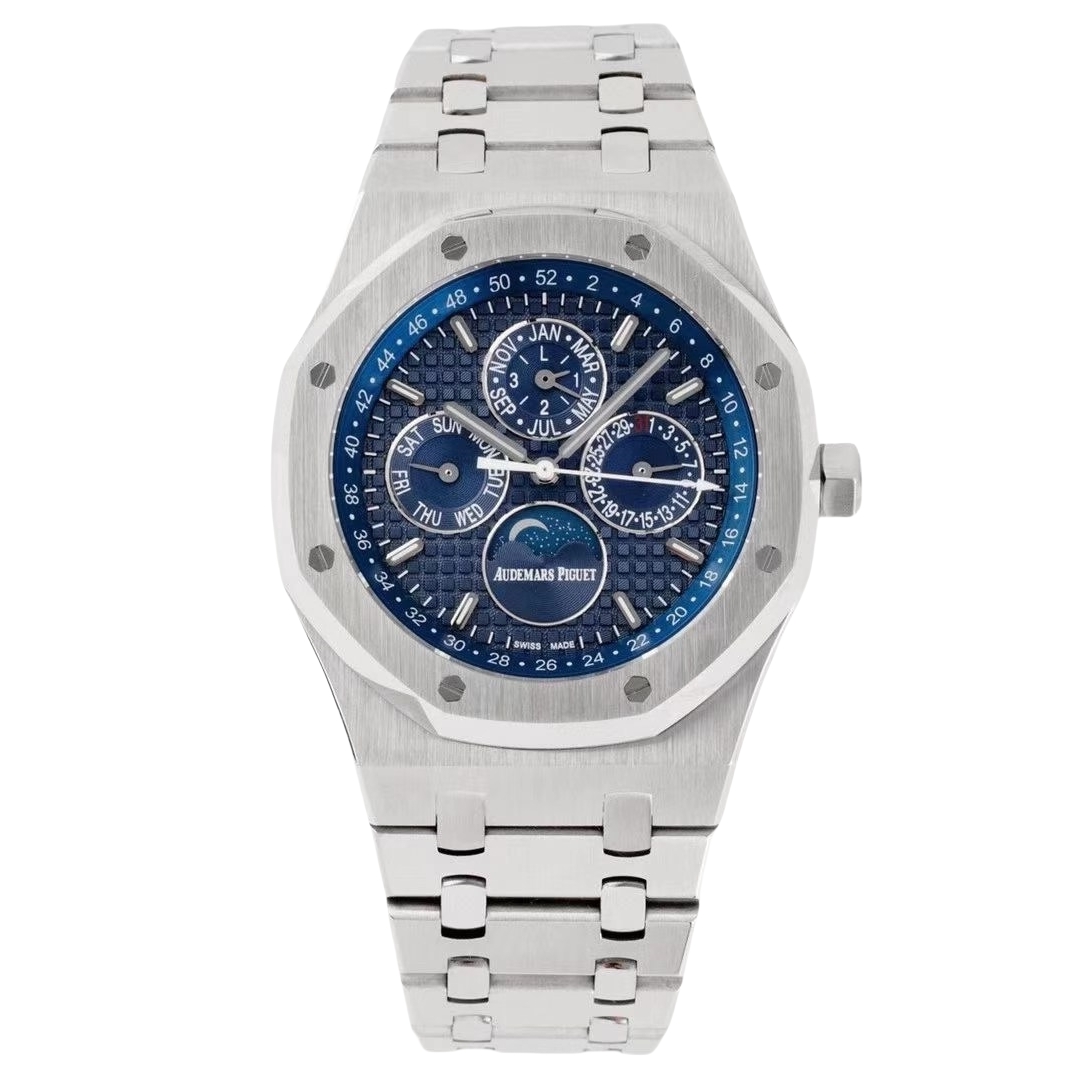 Audemars Piguet Royal Oak 41mm Blue Silver Dial Steel Bezel Moon Phase 26597