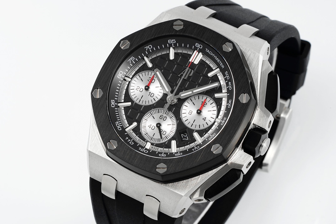 Audemars Piguet Royal Oak Offshore Chronograph 44mm Silver Grey Black Dial Black Bezel Black Rubber 26405CE.OO.A002CA.01
