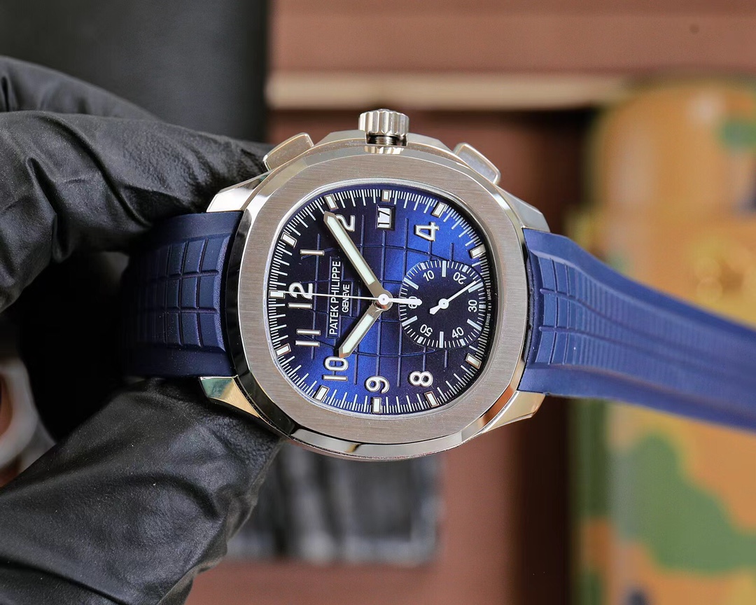 • Patek Philippe Aquanaut 42.2mm Blue Dial Seetl Bezel Blue Rubber Strap 5968G-001