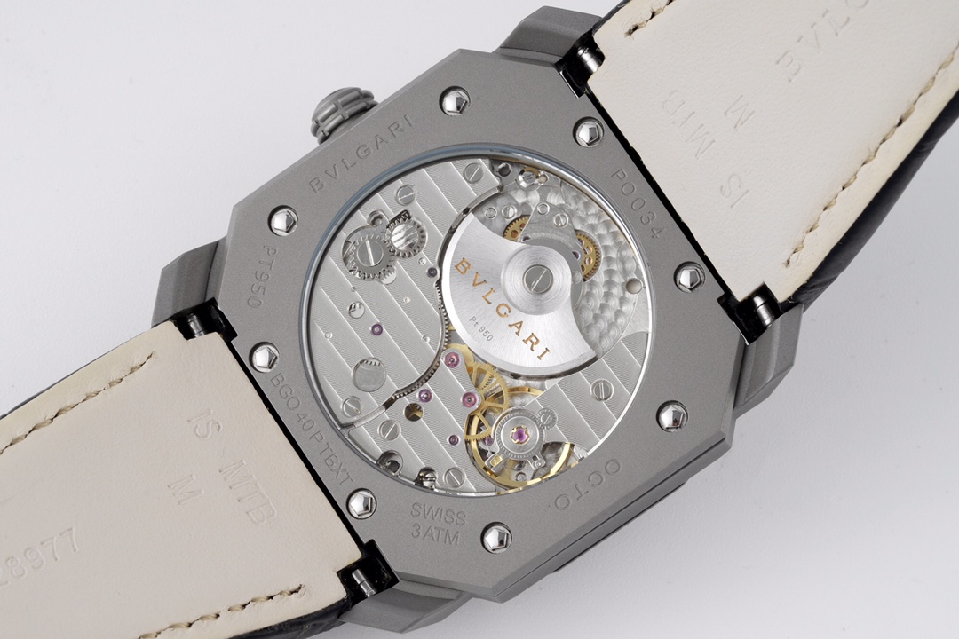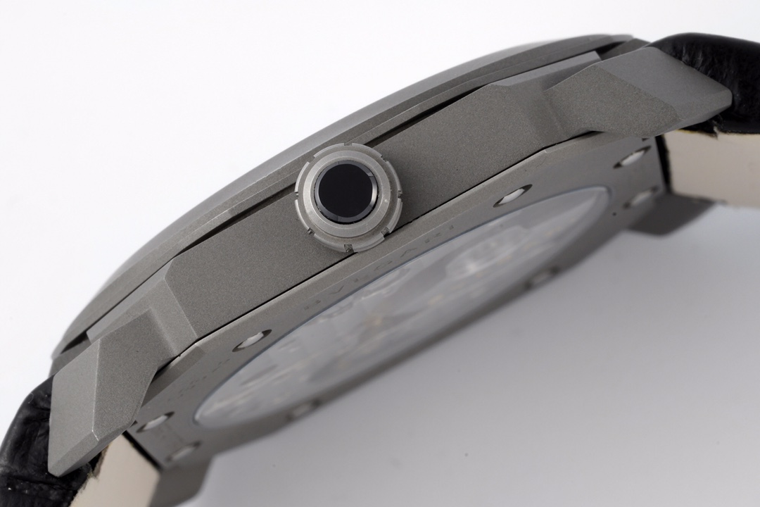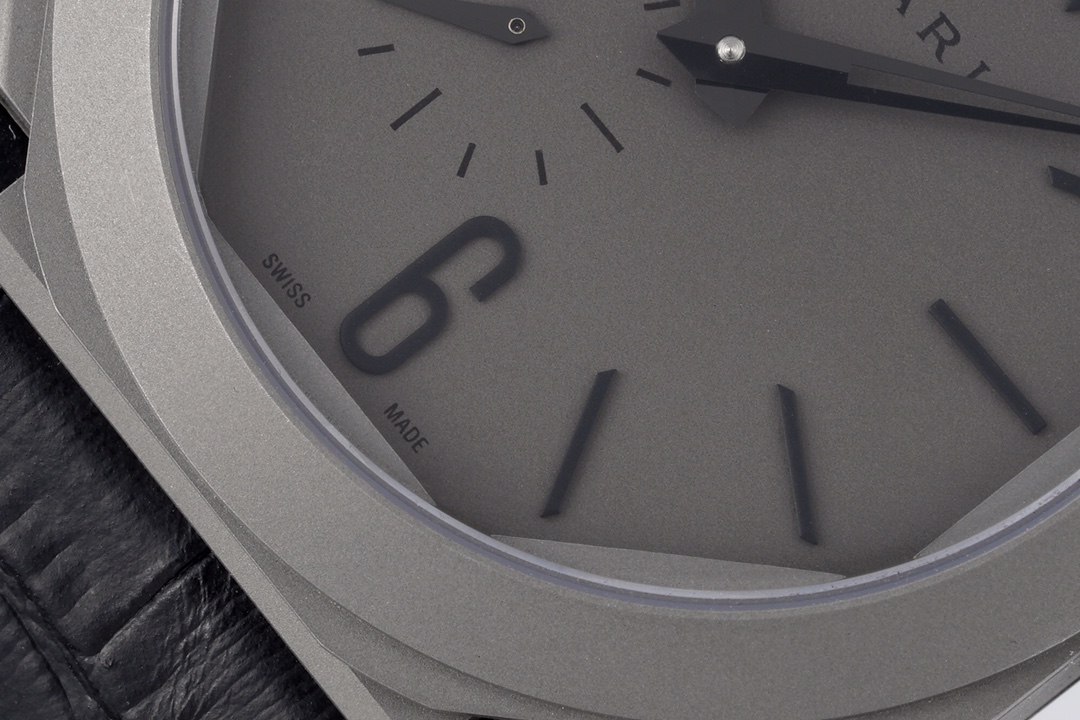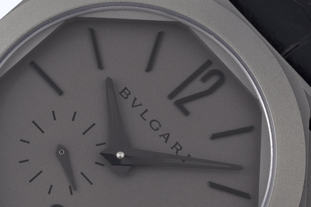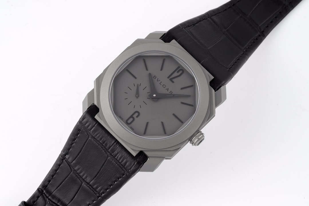 | BVLGARI Octo Finissimo 40mm Grey Dial Titanium Bezel Black Leather Strap 102711 BGO40C14TLXTAUTO | |