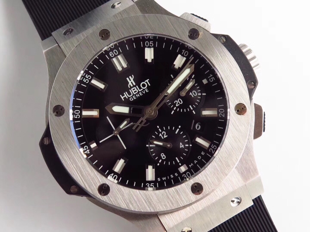 | Hublot Big Bang Black 44mm Black White Dial Steel Bezel Black Rubber Strap 301.SX.1170.RX | |