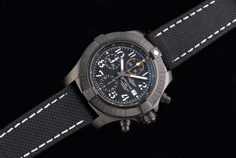 | Breitling Avenger 45mm Black Dial Black Bezel Black Nylon Strap V13317101B1X1 | |