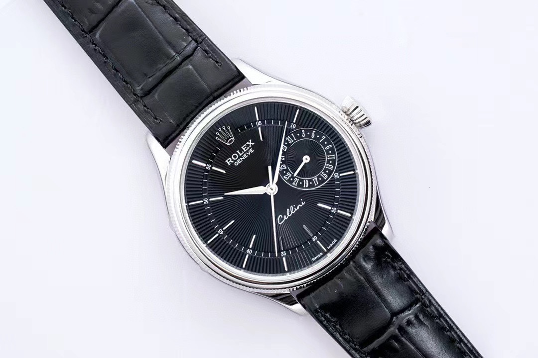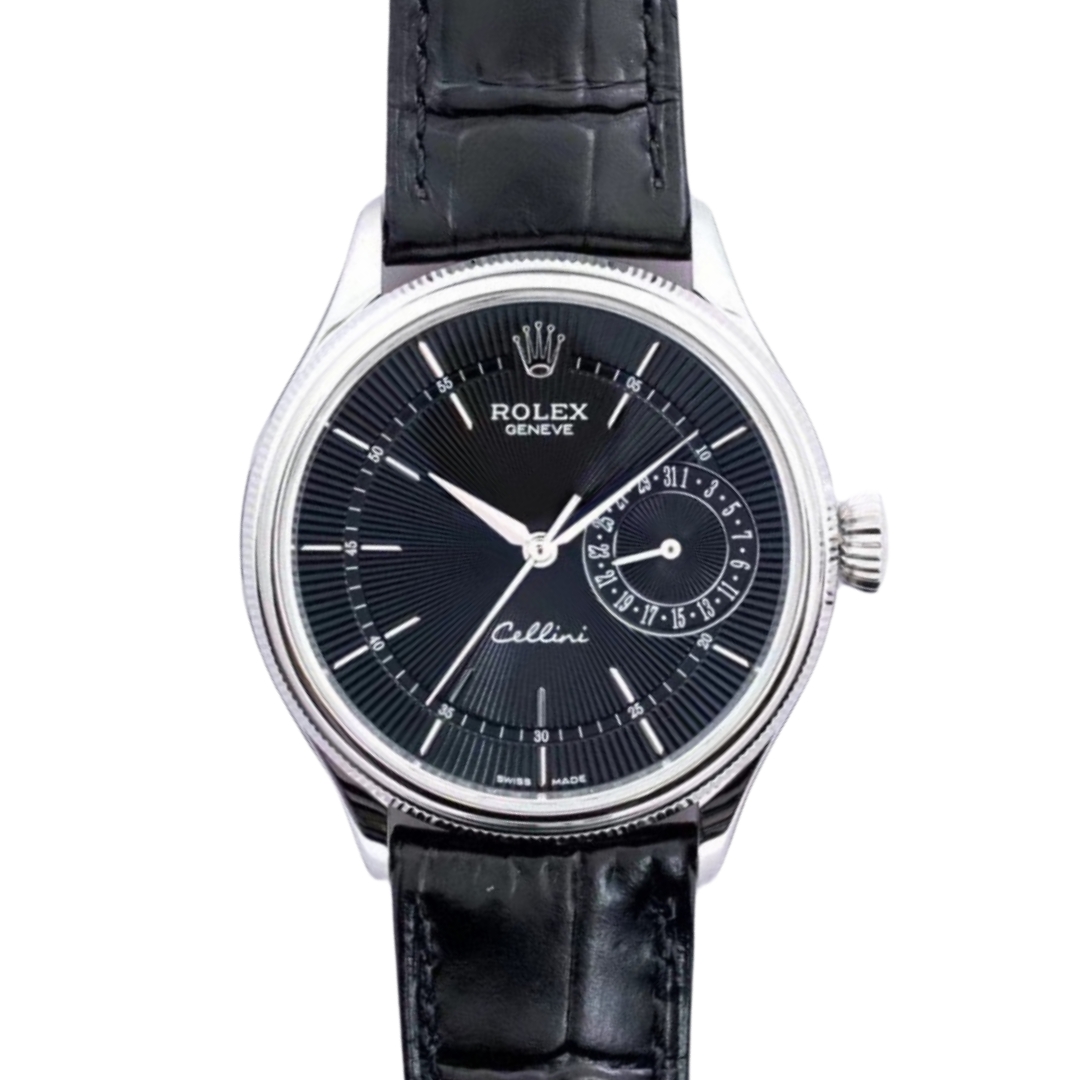 Rolex Cellini Date 39mm Black Dial Platinum Bezel Black Leather 50519-0007