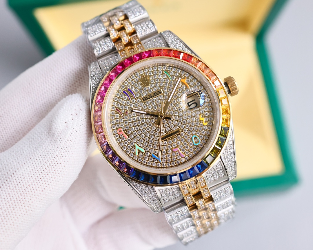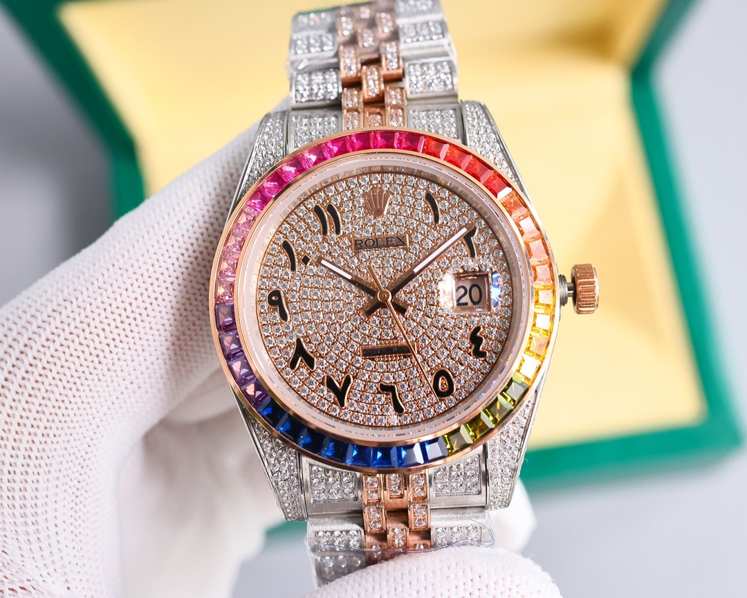 Rolex Datejust Rainbow 41mm Dial Arabia Rose Gold Full Diamonds Deluxe