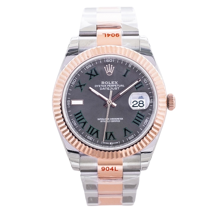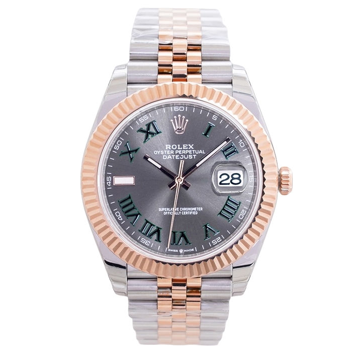 Rolex Datejust 36mm 41mm Green Roman Numerals Grey Dial Rose Gold & Steel Bezel 126331-0015