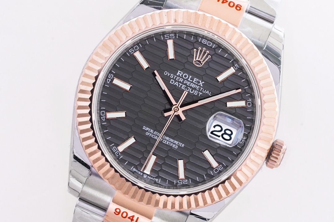 Rolex Datejust 36mm 41mm Water Ripples Grey Dial Rose Gold & Steel Bezel 126331-0019
