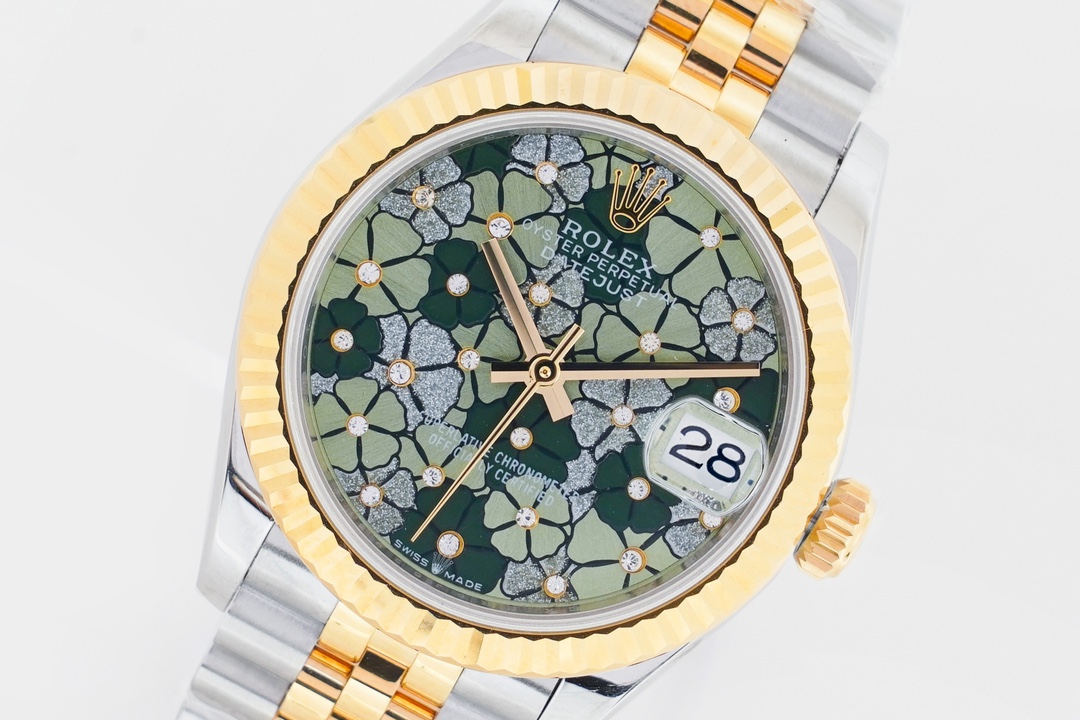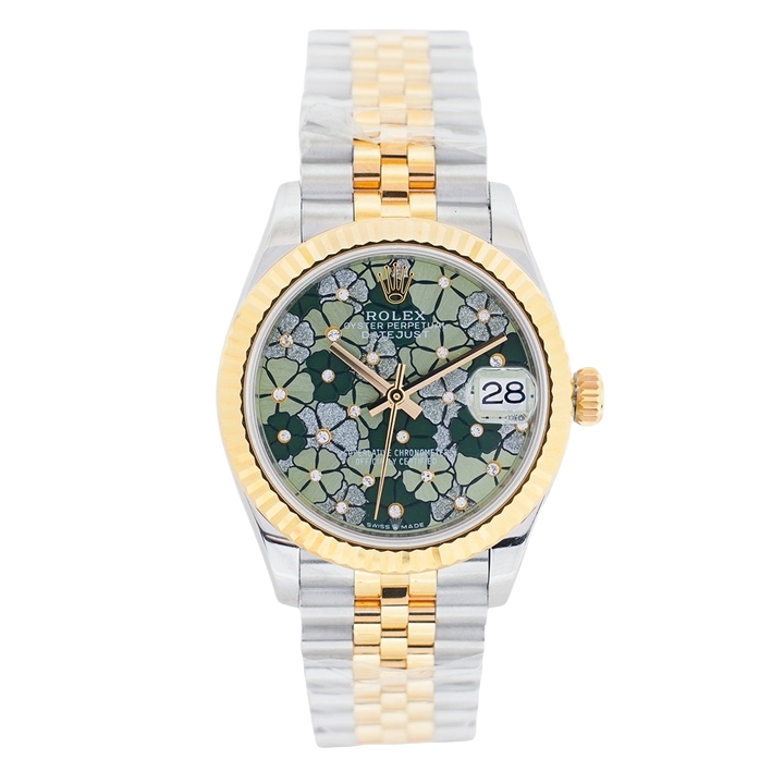 Rolex Datejust 31mm Olive Green Flowers Diamond Dial Yellow Gold Steel Bezel 278273-0032 Woman Ladies