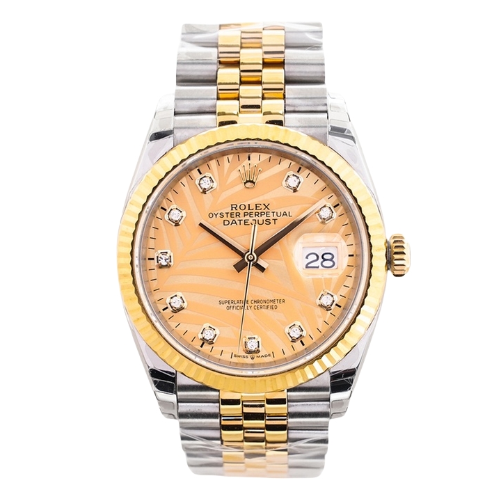 Rolex Datejust 36mm 41mm Palm Leaves Dial Yellow Gold Bezel 126233-0037