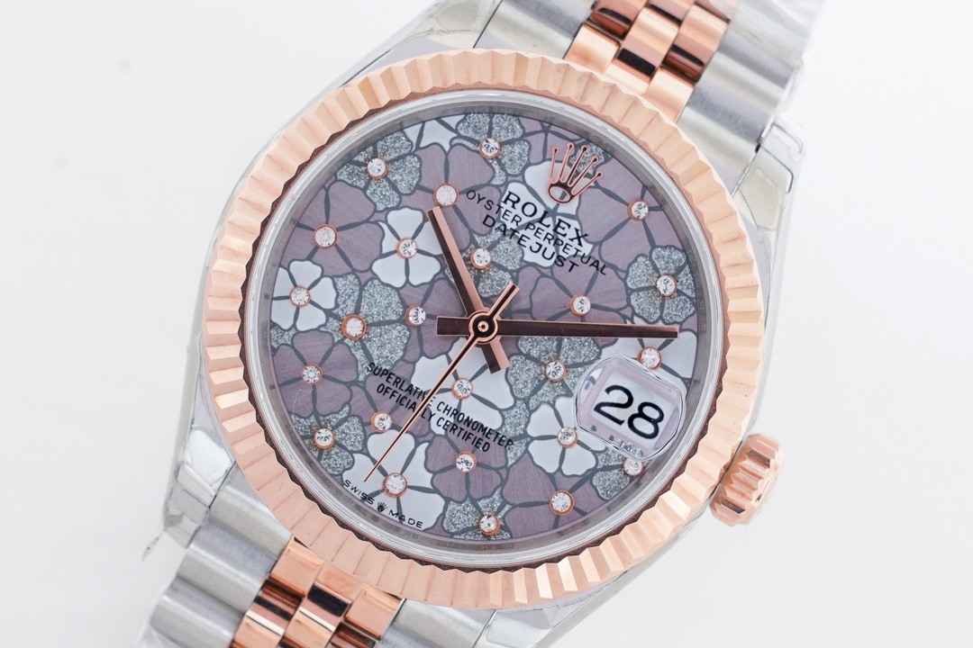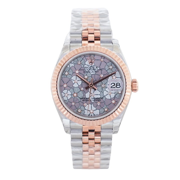 Rolex Datejust 31mm Purple Flowers Diamond Dial Rose Gold Steel Bezel 278275-004F Woman Ladies