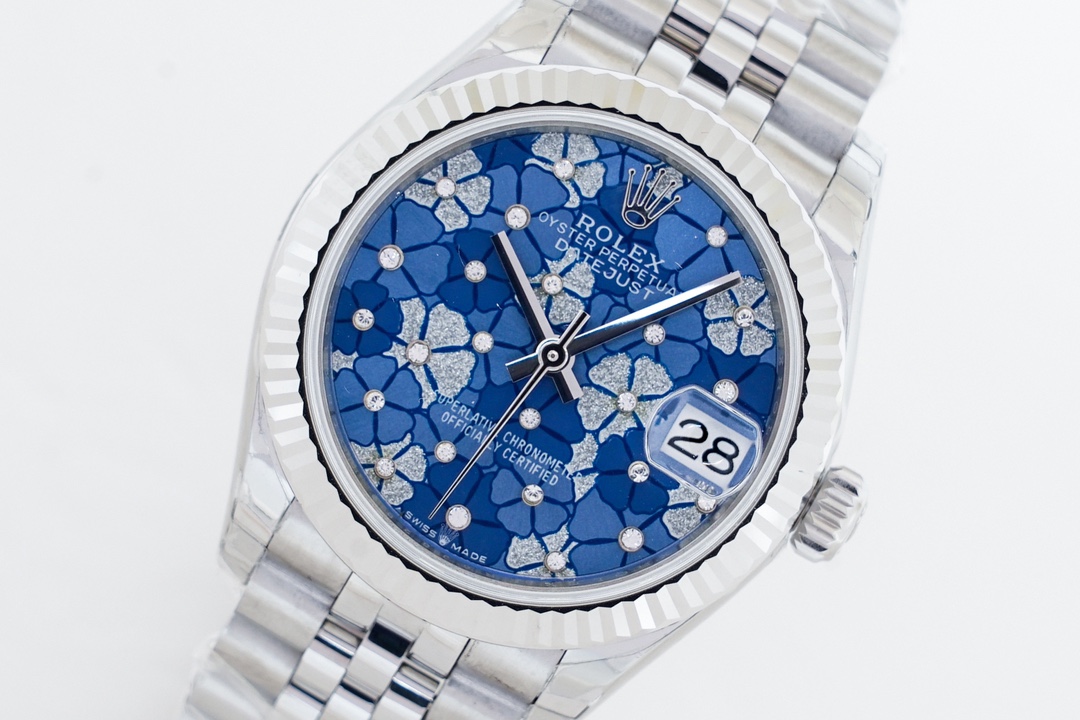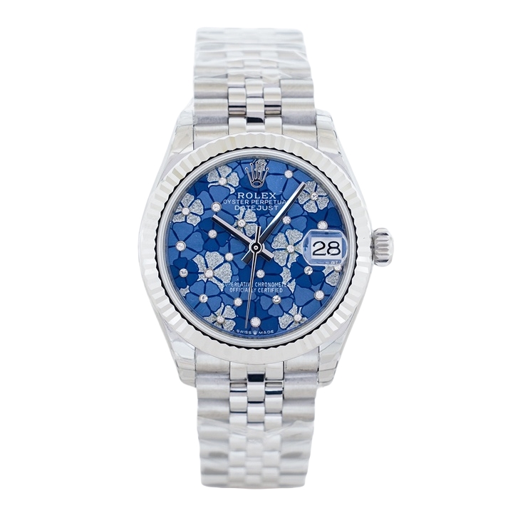 Rolex Datejust 31mm Blue Flowers Diamond Dial Steel Bezel 278274-0036 Woman Ladies