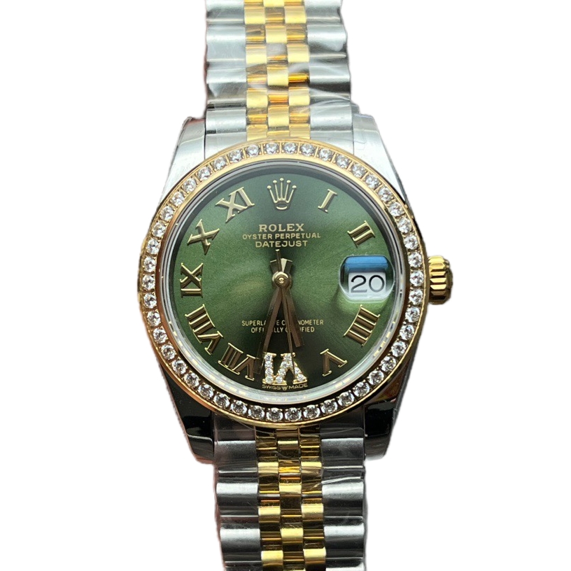Rolex Datejust 31mm Green Diamond Dial Diamond Bezel Yellow Gold Steel Strap 278383rbr-0016 Woman Ladies