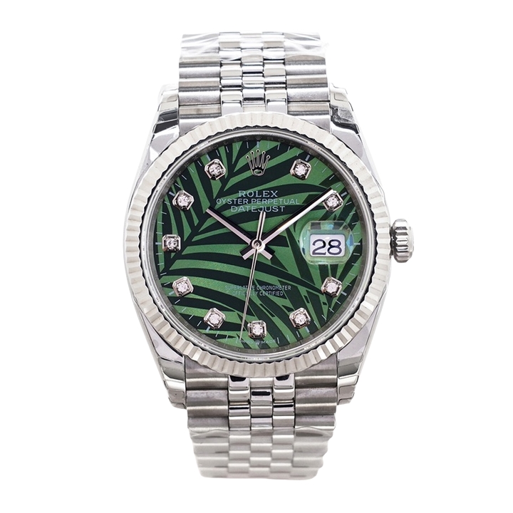 Rolex Datejust 36mm Green Palm Leaves Dial Steel Bezel 126234-0055