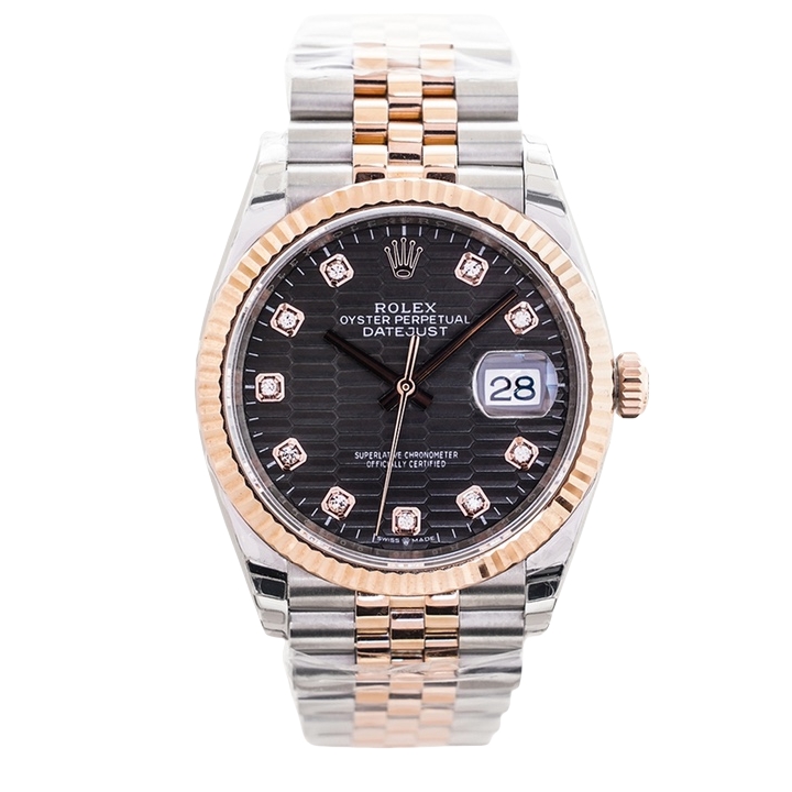Rolex Datejust 36mm Black Water Ripples Diamond Dial Rose Gold & Steel Bezel 126231-0X19
