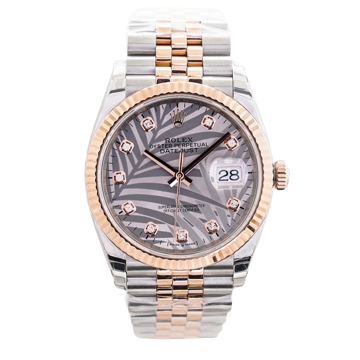 Rolex Datejust 36mm Silver Palm Leaves Dial Rose Gold Steel Bezel 126231-0037