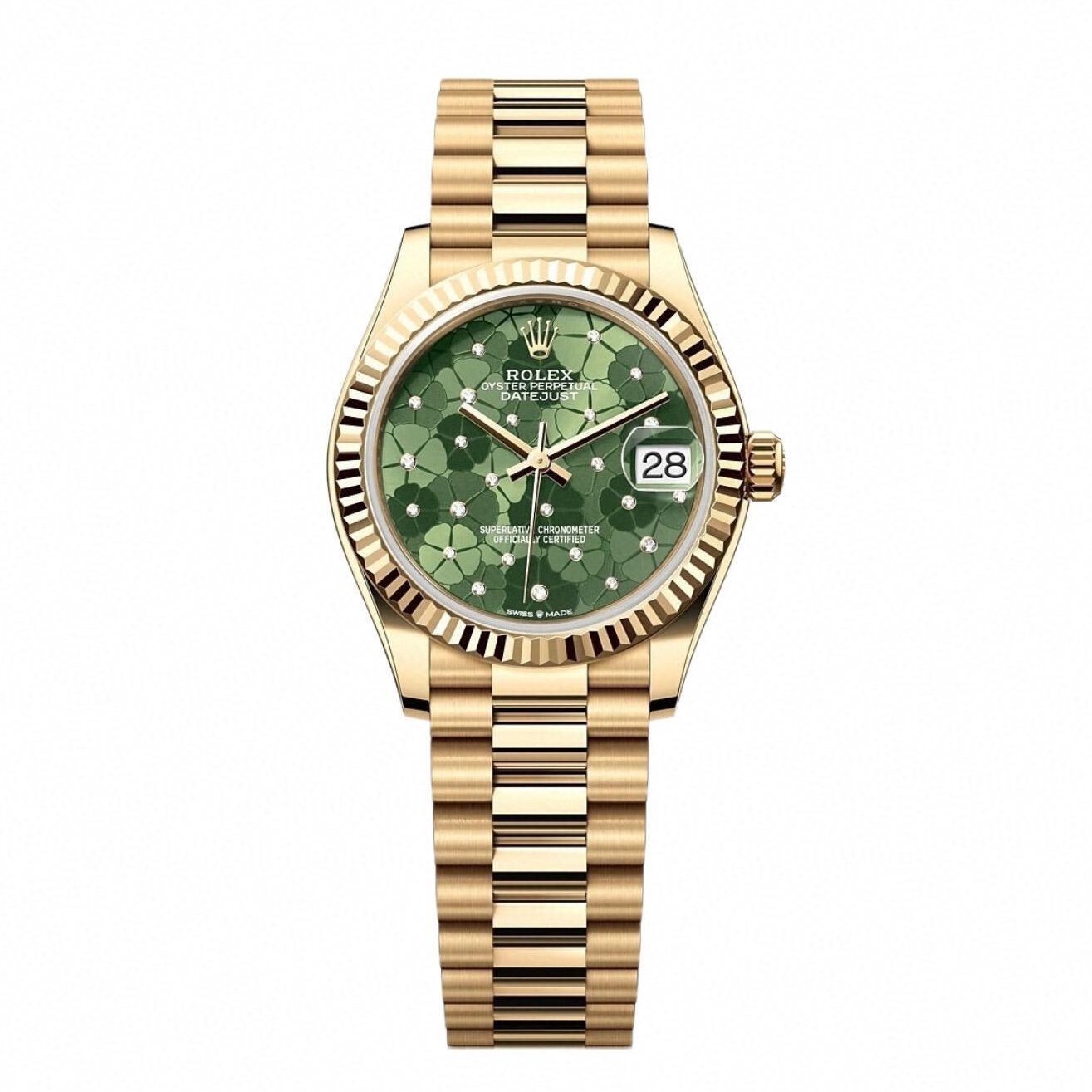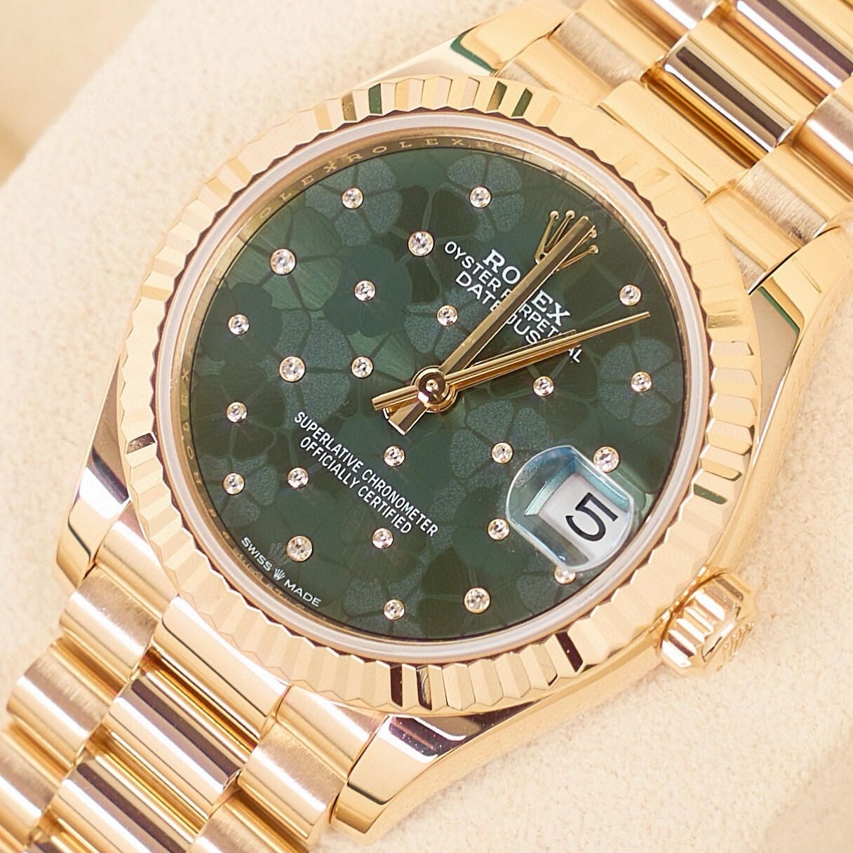 Rolex Datejust 31mm Olive Green Flowers Diamond Dial Yellow Gold Bezel 278278-0046 Woman Ladies