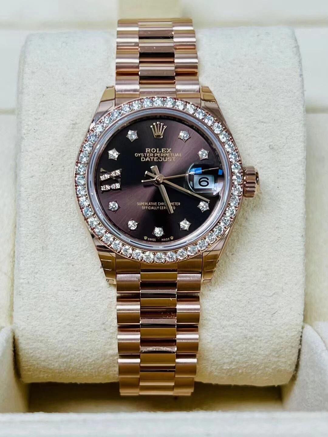 Rolex Datejust 28mm Diamond Chocolate Dial Rose Gold Diamond Bezel 279139RBR-0002