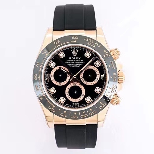 | Rolex Daytona Cosmograph 40mm Dial Rose Gold Gen Black Strap 116515LN-0061 | |