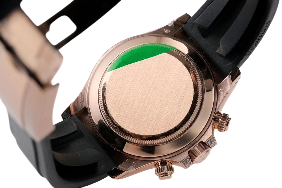 | Rolex Daytona Rainbow 40mm Black Dial Rose Gold Diamond Bezel Black Rubber Strap 116595 RBOW | |