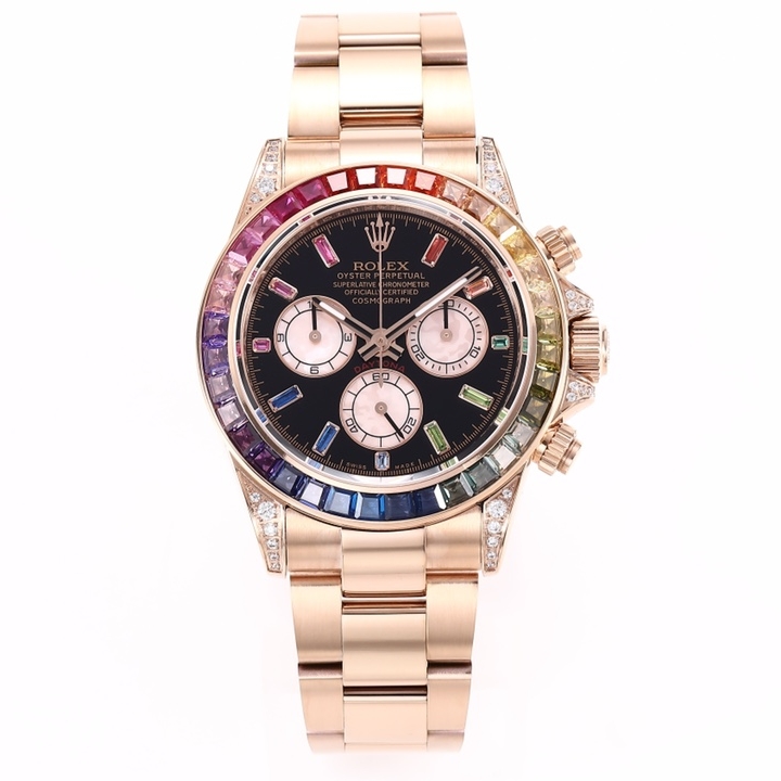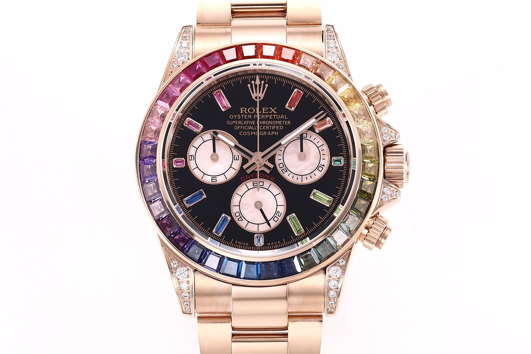 Rolex Daytona Rainbow 40mm Black Dial Rose Gold Diamond Bezel 116595 RBOW