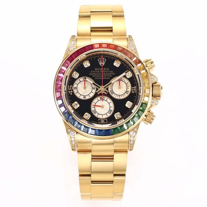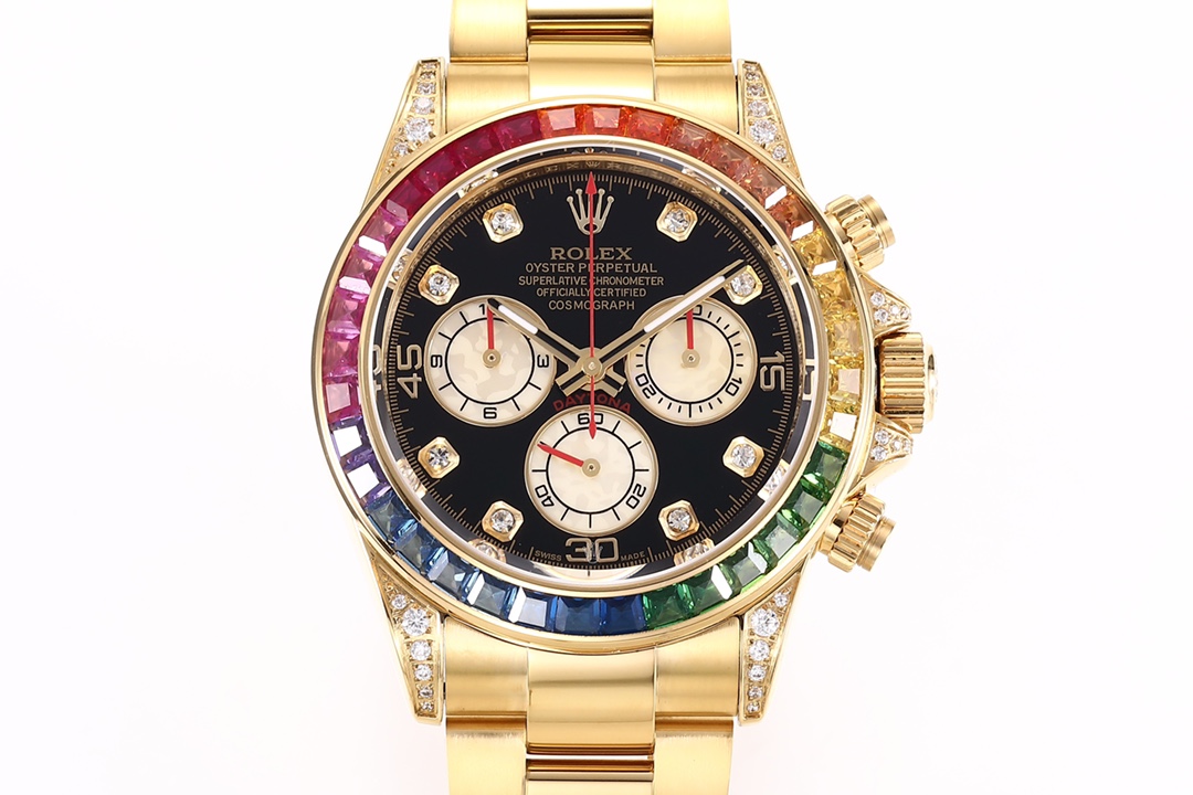 Rolex Daytona Rainbow 40mm Black Dial Yellow Gold Diamond Bezel 116598RBOW