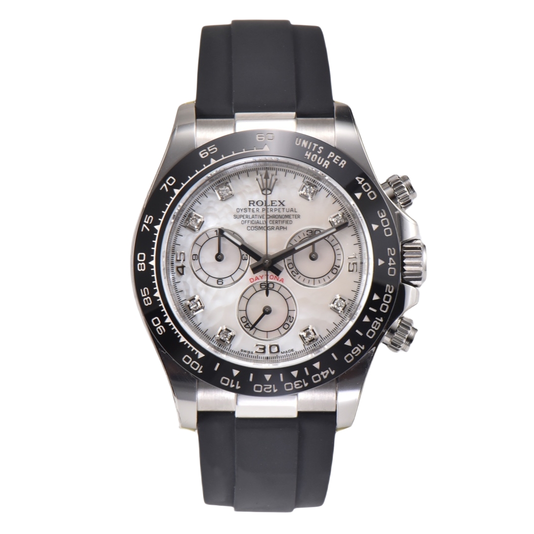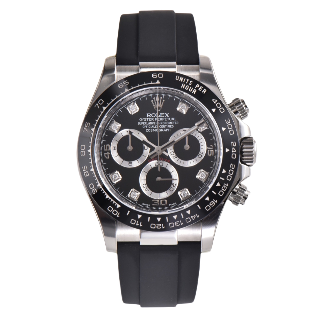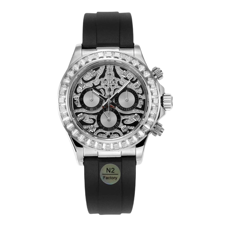 Rolex Daytona Cosmograph 40mm Cloud Fritillary Diamond Dial Black Platinum Bezel Black Rubber Strap 116519LN-0026