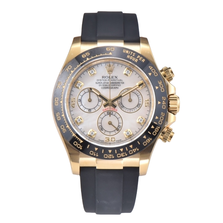 Rolex Daytona Cosmograph 40mm Dial Cloud Fritillary Yellow Gold Diamond Black Strap 116518LN-0045