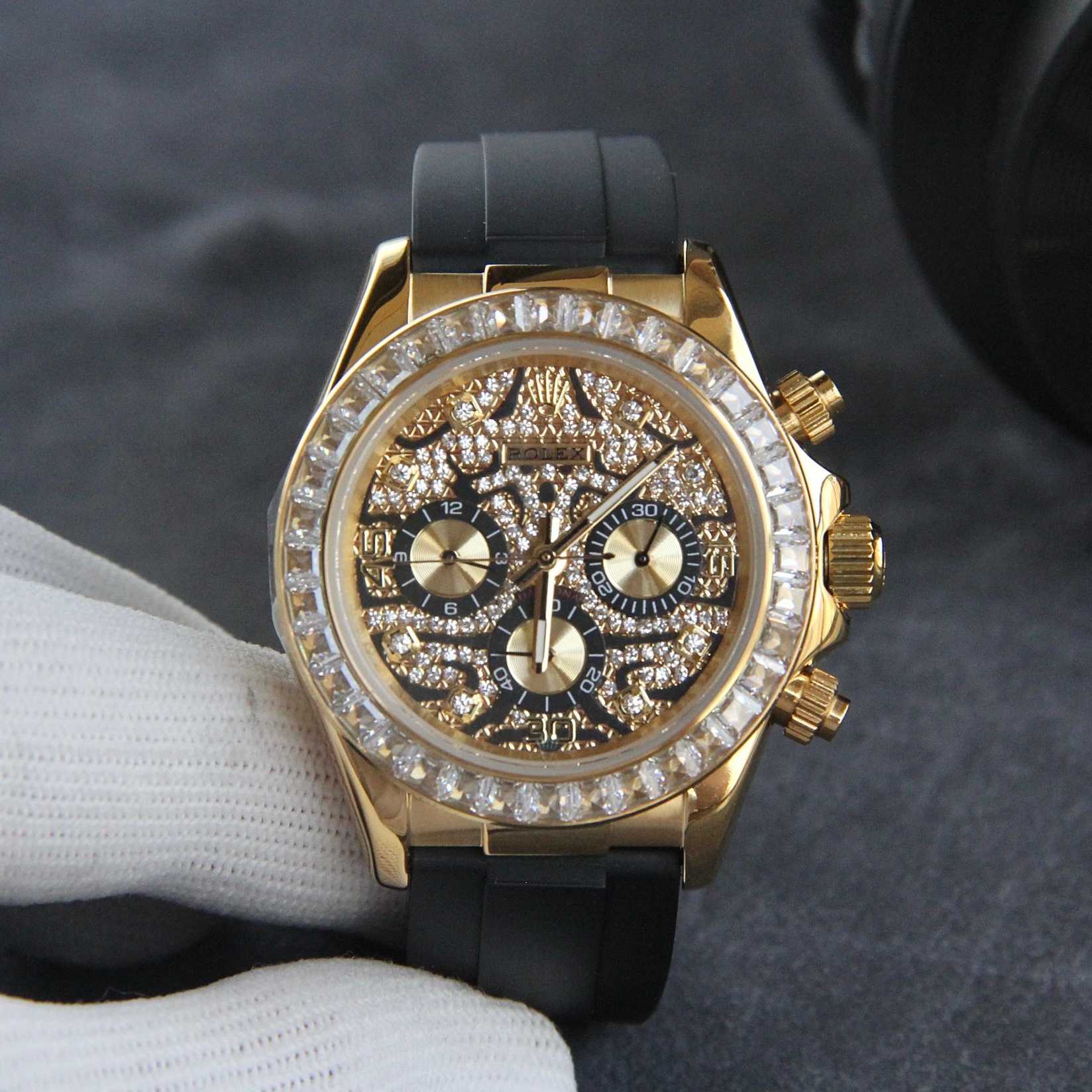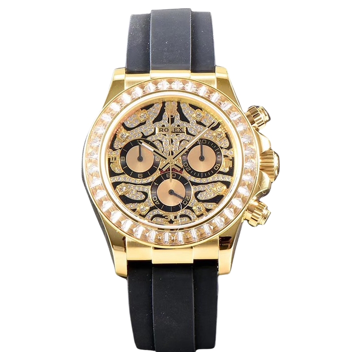 Rolex Daytona 40mm Yellow Gold Diamond Dial Diamond Bezel Black Rubber Strap 116588TBR Eye of the Tiger