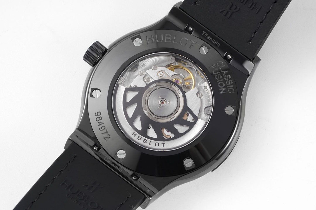 | Hublot Classic Fusion 42mm Yellow Gold Carbon Fiber Dial Black Ceramics Bezel Black Crocodile Skin Strap 541.CO.1781.LR | |