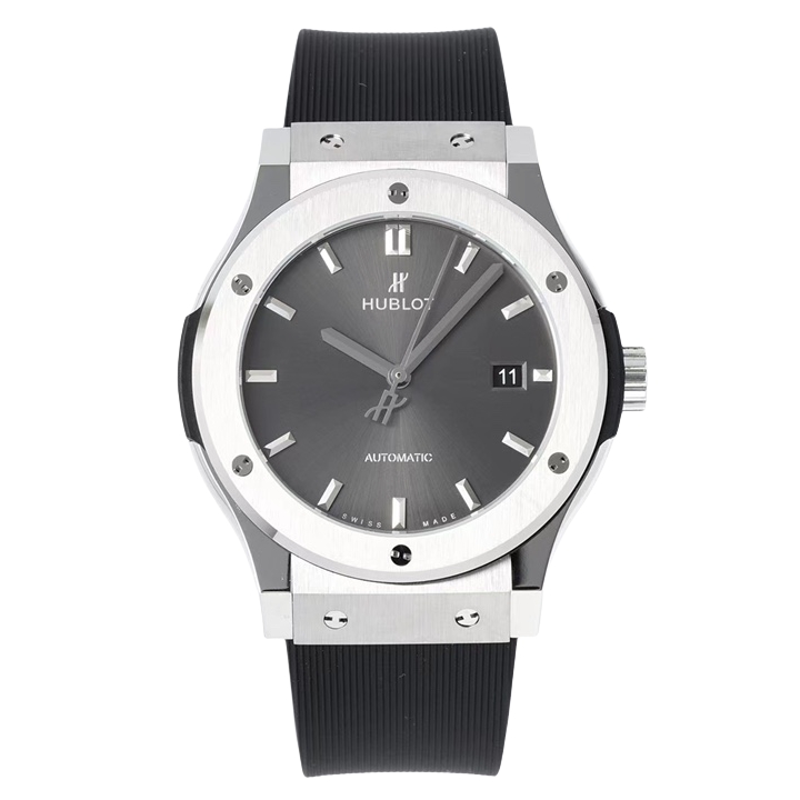 Hublot Classic Fusion 42mm Grey Dial Titanium Bezel Black Rubber Strap 542.NX.7071.RX