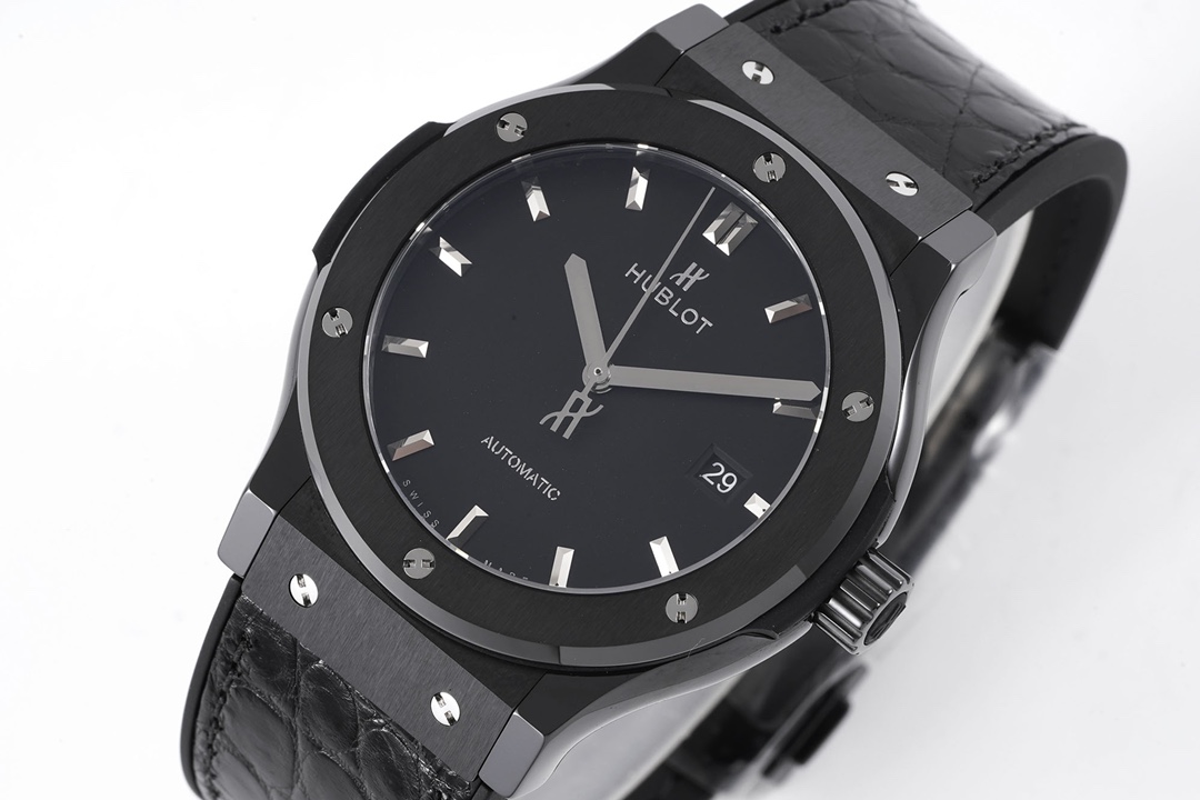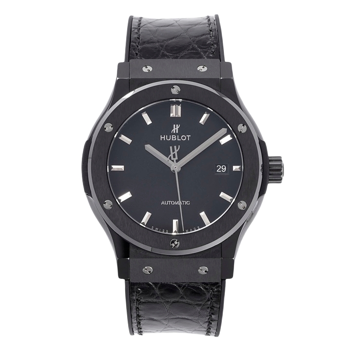 Hublot Classic Fusion 42mm Black Dial Black Ceramics Bezel Black Crocodile Skin Strap 542.CM.1171.LR