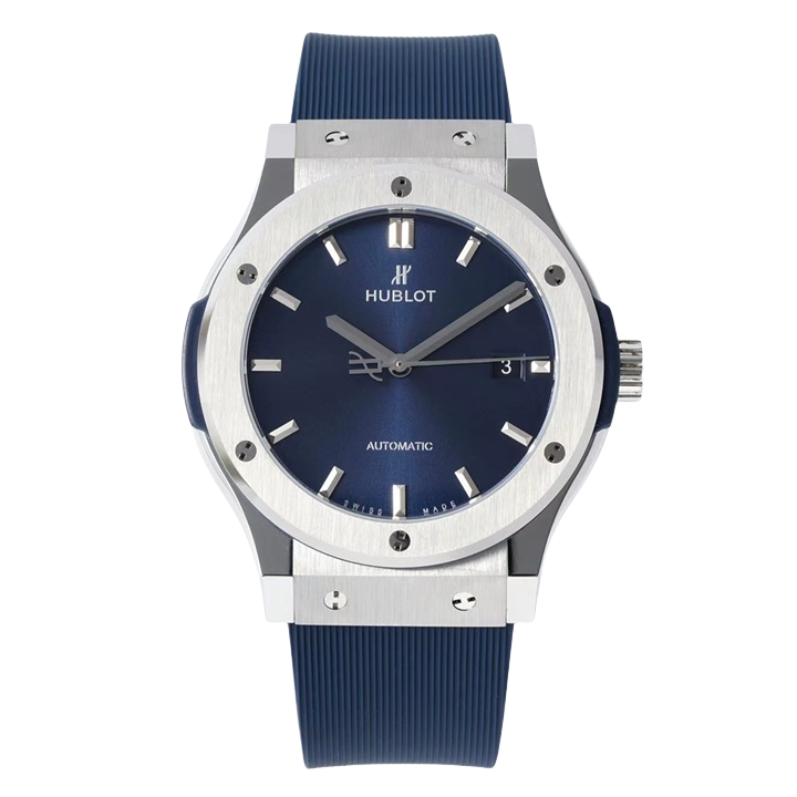 Hublot Classic Fusion 42mm Blue Dial Titanium Bezel Blue Rubber Strap 542.NX.7170.RX