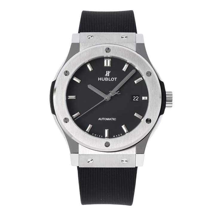 Hublot Classic Fusion 42mm Black Dial Titanium Bezel Black Rubber Strap 542.NX.1171.RX