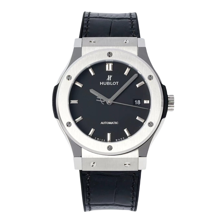 Hublot Classic Fusion 42mm Black Dial Titanium Bezel Black Crocodile Skin Strap 542.NX.1171.LR