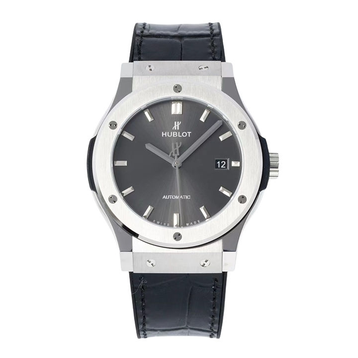 Hublot Classic Fusion 42mm Grey Dial Titanium Bezel Black Crocodile Skin Strap 542.NX.7071.LR