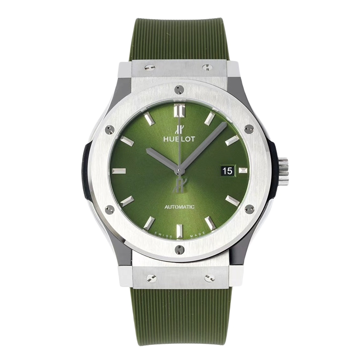 Hublot Classic Fusion 42mm Green Dial Titanium Bezel Green Rubber Strap 542.NX.8970.RX