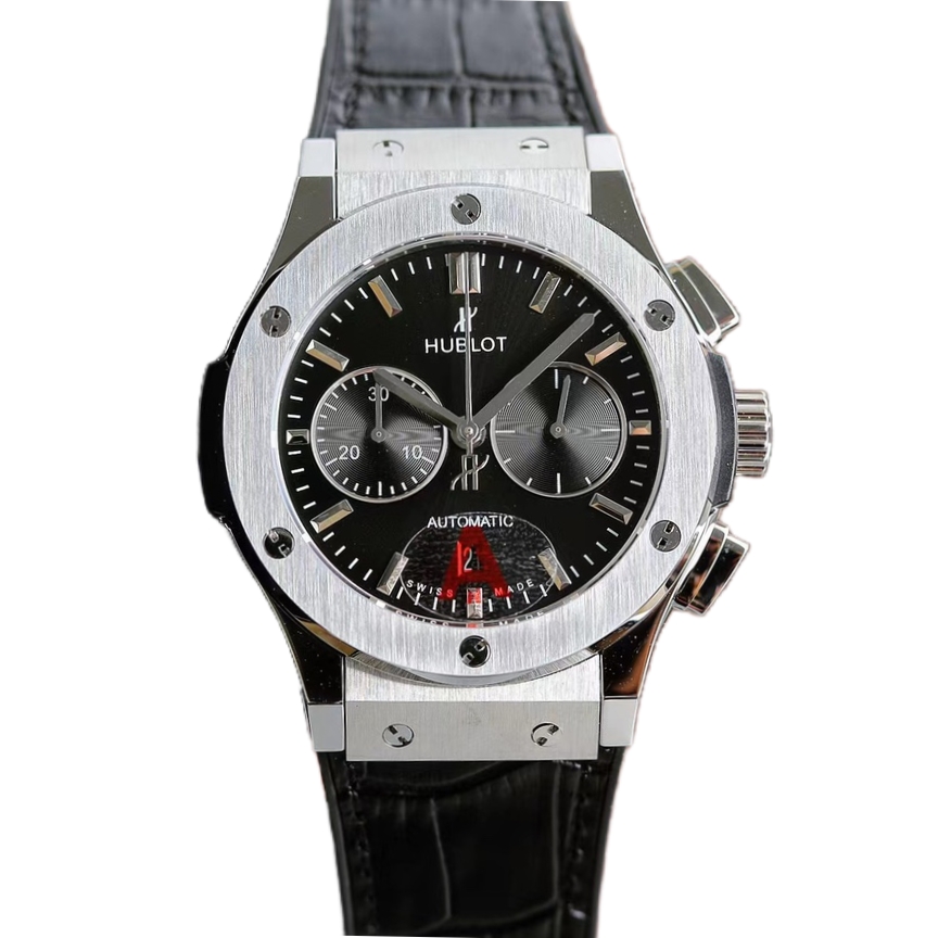 Hublot Classic Fusion 45mm Black Dial Steel Bezel Black Leather Strap 521.NX.1171.LR