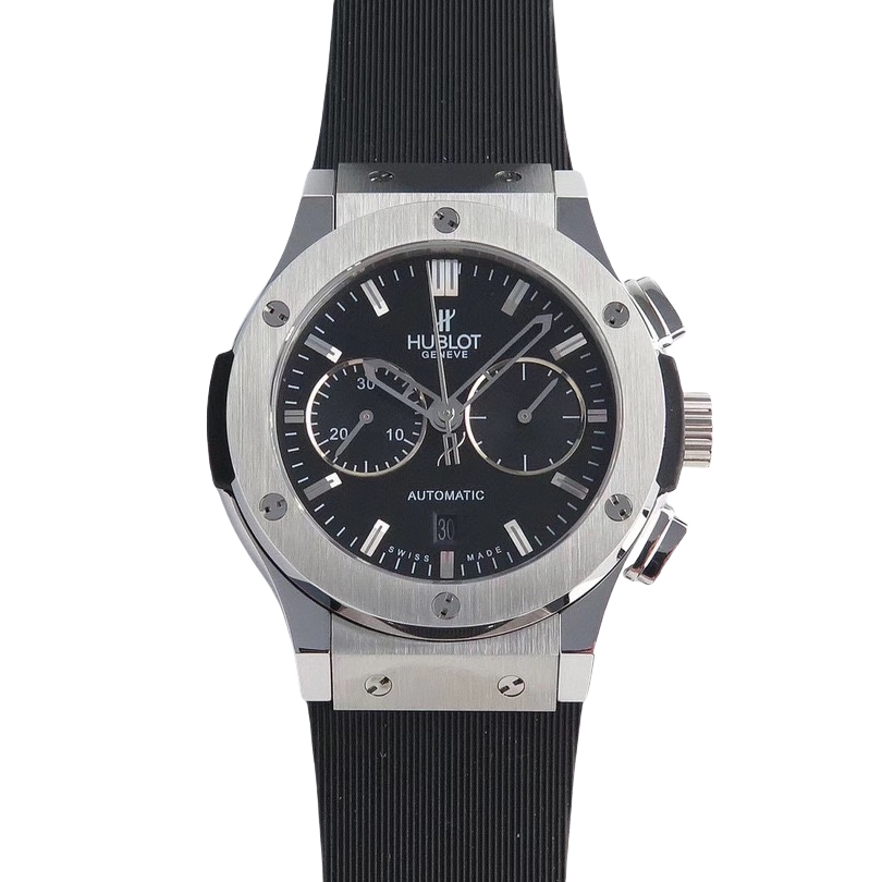 Hublot Classic Fusion 45mm Black Dial Steel Bezel Black Rubber Strap 521.NX.1171.RX