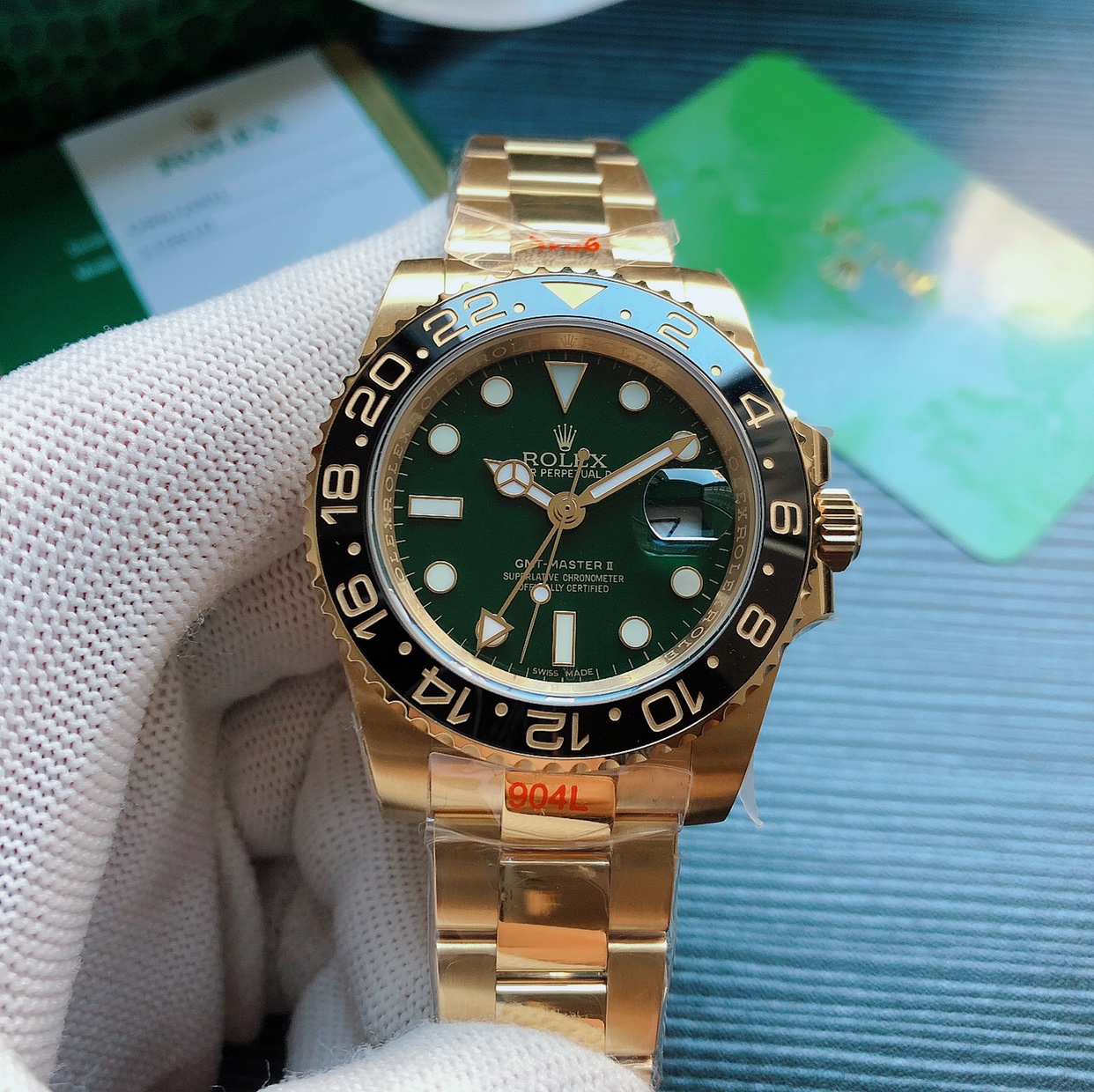 Rolex GMT-Master ll 40mm Green Dial Black Bezel Yellow Gold 116718LN-0002