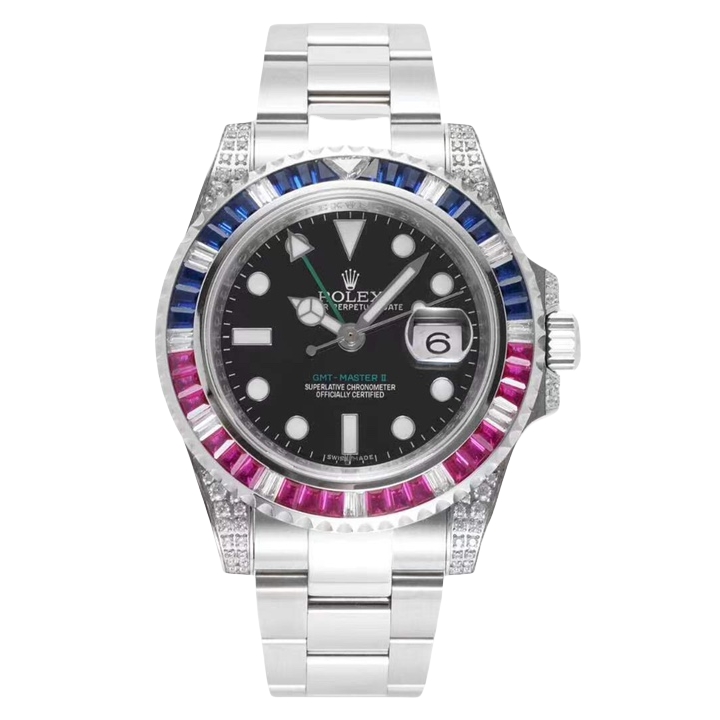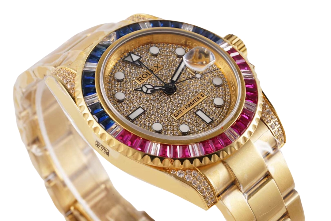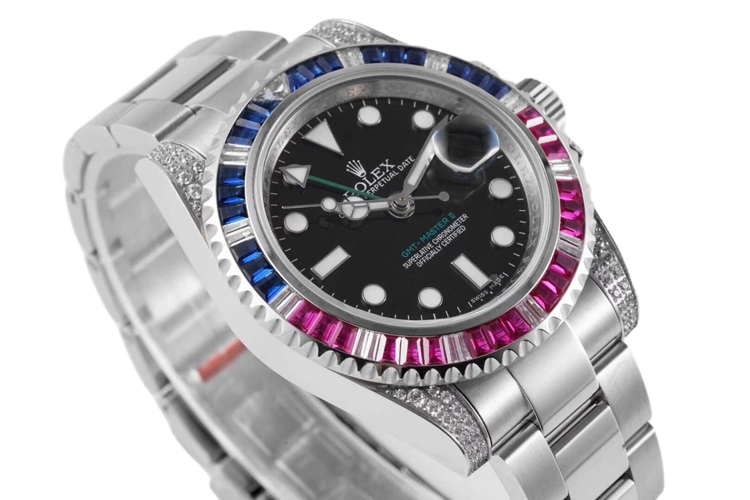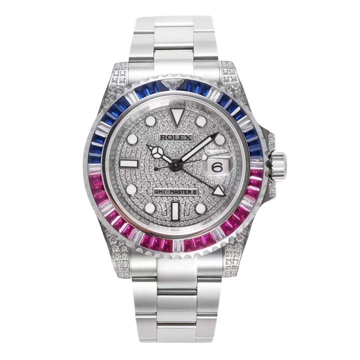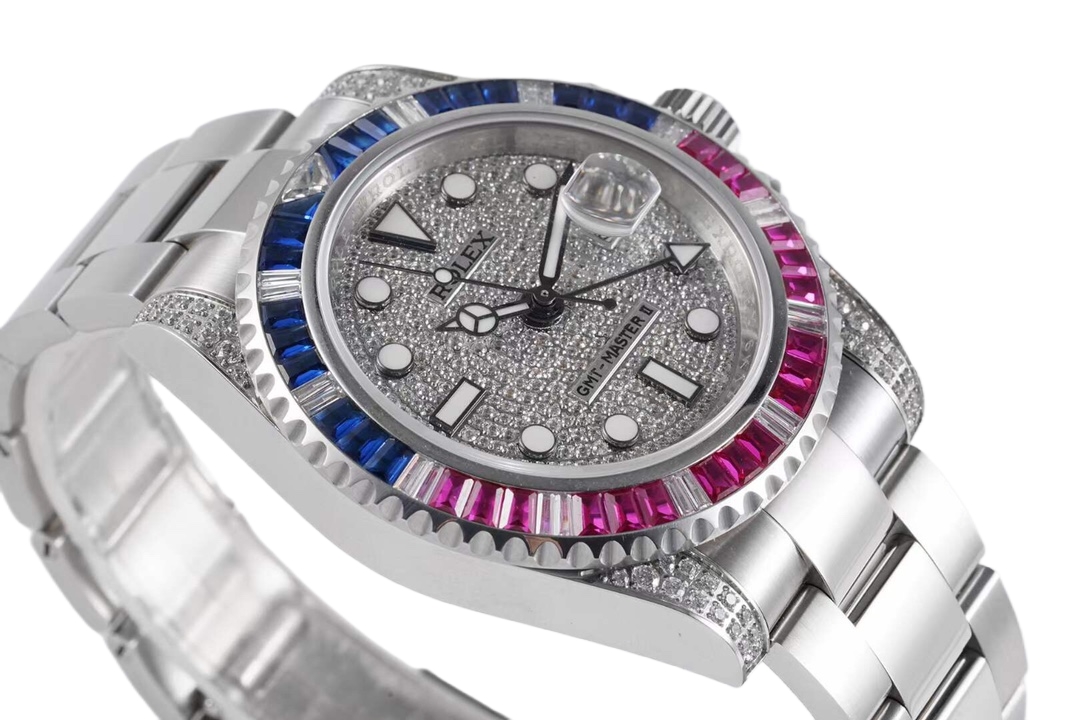Rolex GMT-MASTER II 40mm Full Diamond Dial Blue Red Diamond Bezel Steel 116759-SARU