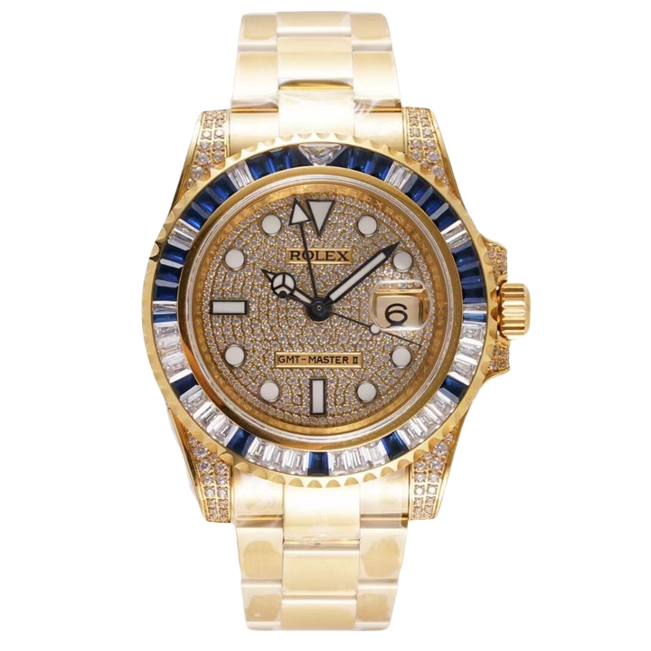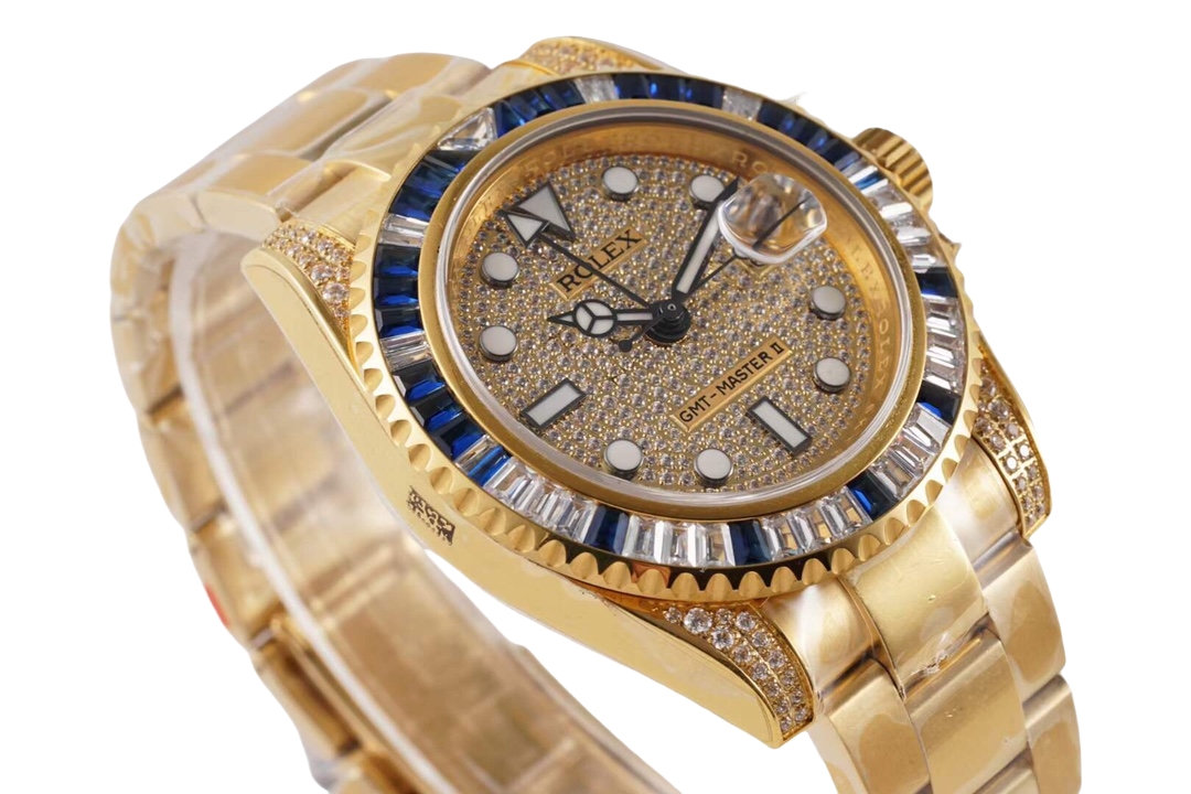 Rolex GMT-Master ll 40mm Full Diamond Dial Yellow Gold Blue Diamond Bezel 116758SA-78208