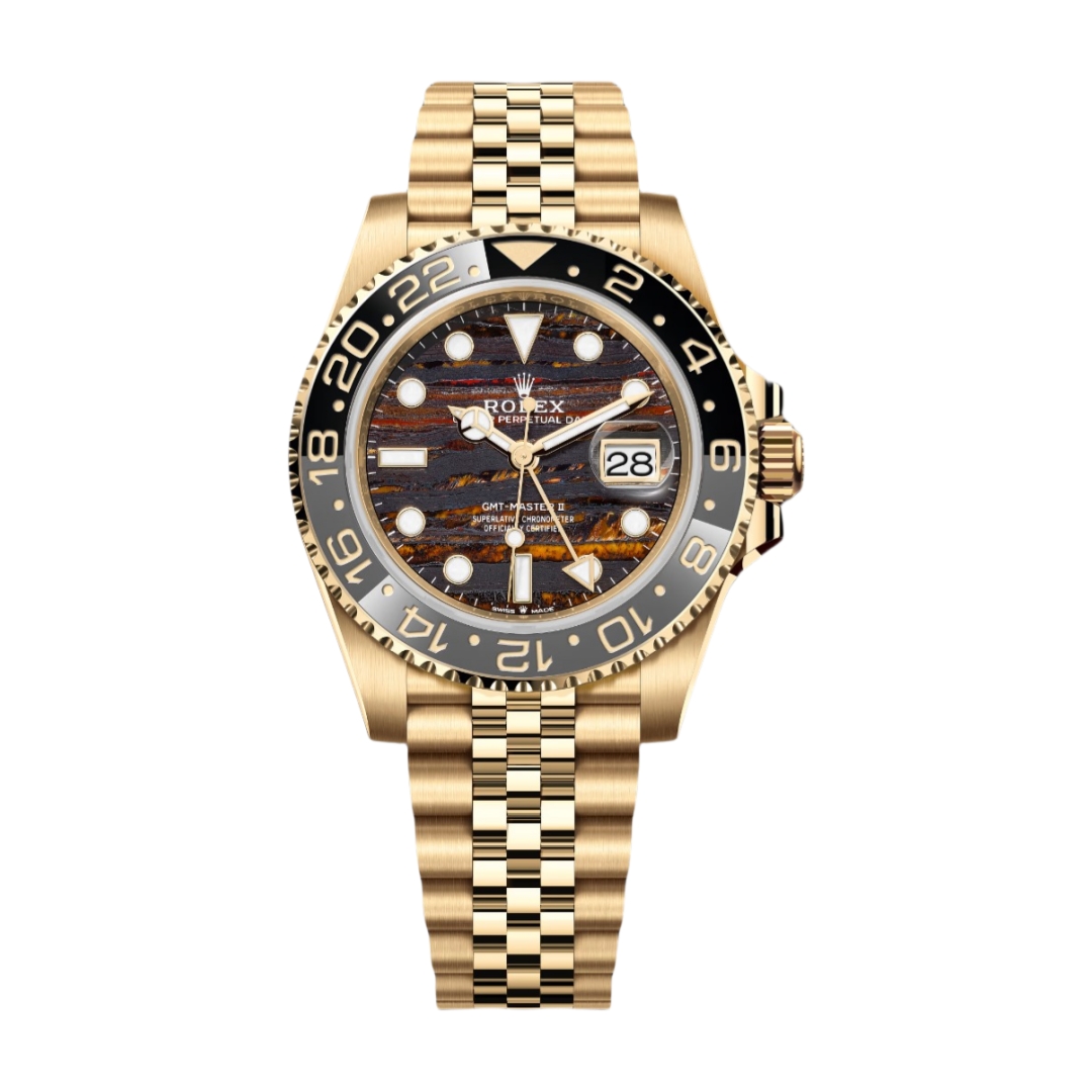 Rolex GMT-Master ll 40mm Iron Tiger Eye Stone Dial Black Grey Bezel Yellow Gold Strap 126718GRNR-0002 2025 New Products