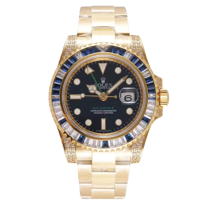 Rolex GMT-Master ll 40mm Black Dial Yellow Gold Blue Diamond Bezel 116758SARU-78208